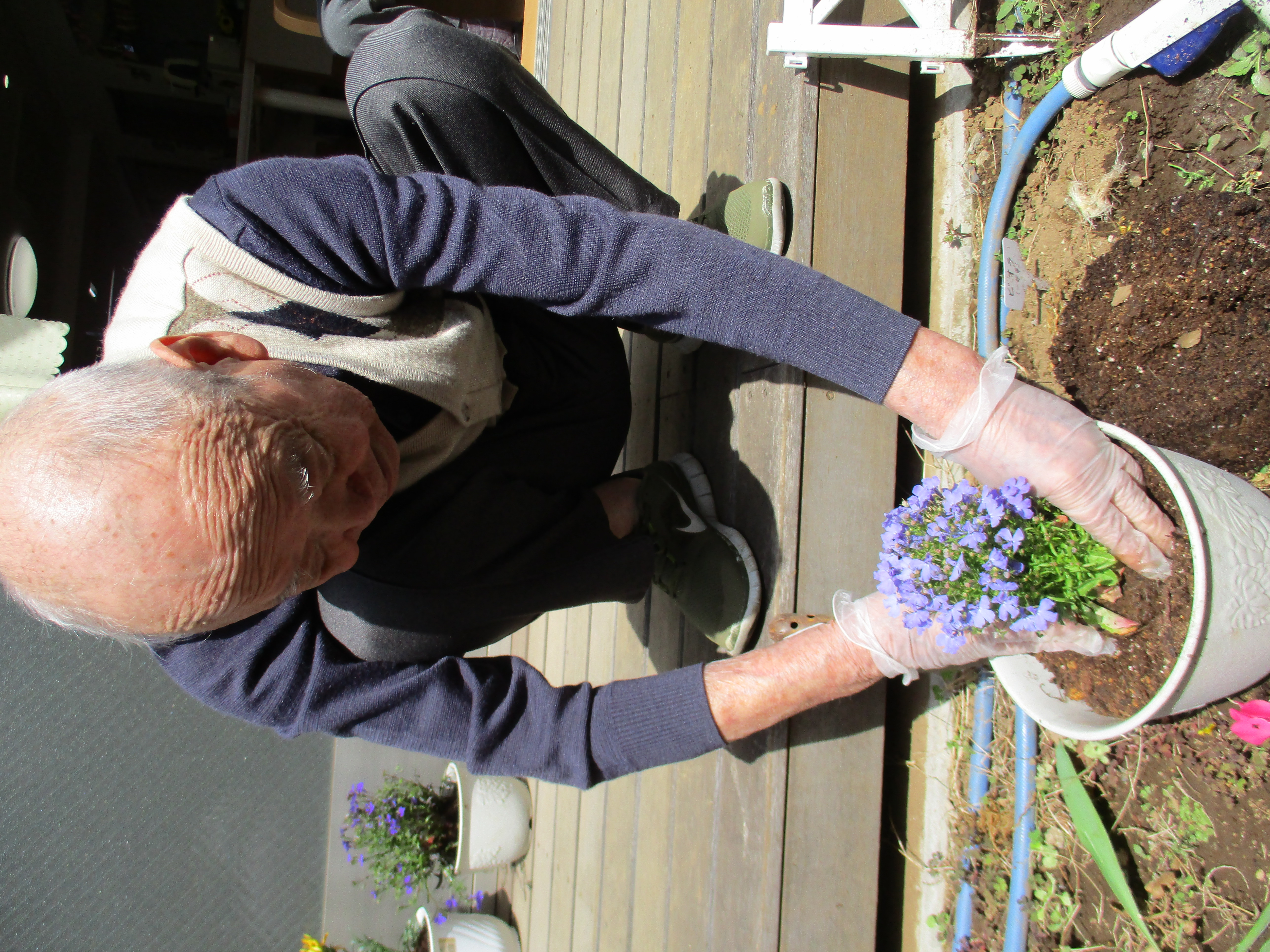 先日スタッフがお花を買ってきてくれたのでN様M様が鉢に植えくれました♫