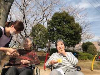 桜のきれいさもですが、ご利用者様もうつくしさ(≧∇≦)、ダンディー(*≧∀≦*)さをお届。