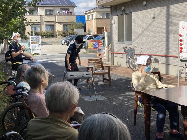 4月21日にお待ちかねBBQレクを開催する事が決定しました!外気浴レクは定期的に行われていますが、BBQの為椅子やテーブル・BBQ台等を用意し、いつもの外気浴レクよりも長い時間外で過ごします。ホームのあちこちに案内のポスターを用意し、皆様とても楽しみにしている様子です。