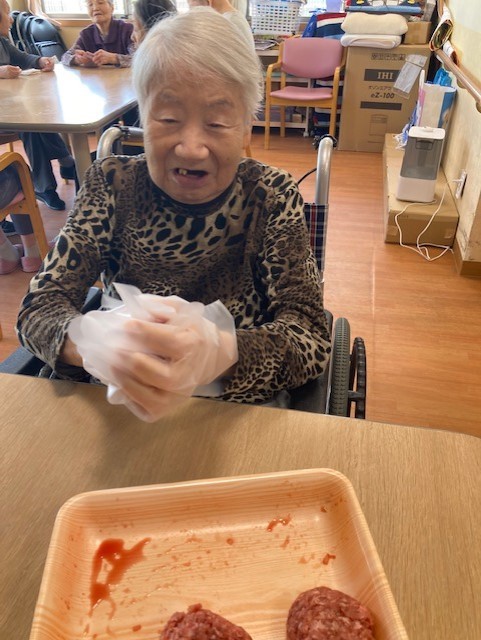 皆さん楽しそうにハンバーグを作ってますね( ^^) _U~~