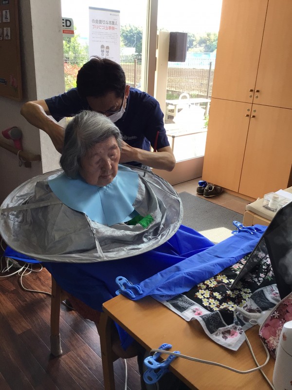 今日は訪問理美容に来てもらい、暑くなる季節へむけてカットをします。