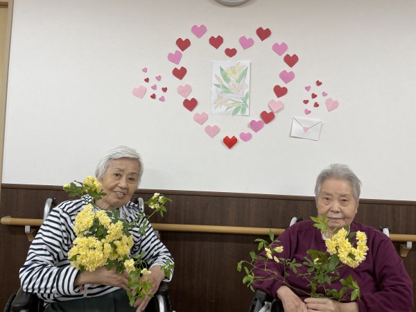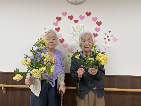 季節感のある物や瑞々しい花に触れることで、ご利用者の皆様の表情も生き生きとされて、自然と笑顔が溢れていました。