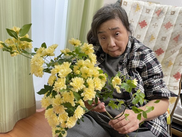 生花に触れ、自然の香りを楽しみ、可愛らしい黄色い花が満開に咲いている様子をご覧になられて、ご利用者様も大変喜ばれていました。