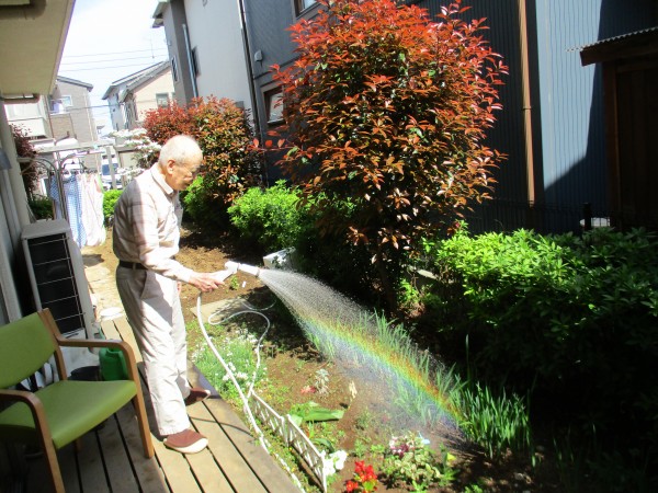 先日植えた苗が気になり 3Fの、M様が遊びに来てくれました。