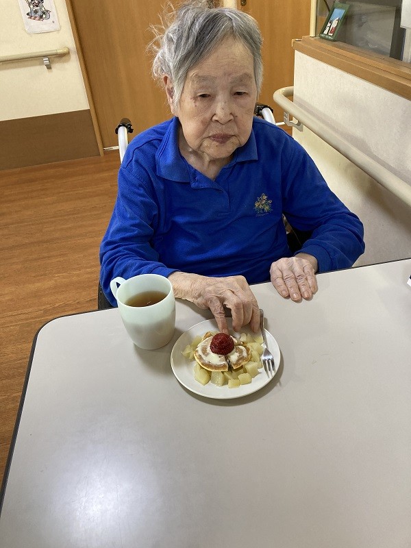4月25日(月曜日)本日は、3階のK様の、86回目のお誕生日です。3階の皆様とお誕生会を行いました。先日は、お花見と誕生会をおこない、今日はk様だけのお誕生会です。おやつに、3階の職員から、手作りのbirthday ケーキを、皆様で召し上がりお祝いをしました。ホーム長から「お誕生日おめでとうございます」とお祝いの言葉をかけると、「これからもどうぞ宜しくお願いいたします」とのことでした。これからも、元気に笑顔を見せてください!