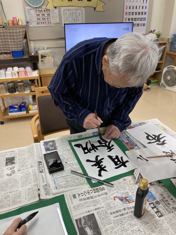 先週から天気が悪く雨が続いていたので、ご利用者様のリクエストで習字をやっちゃいました!