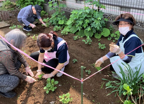 特にスタッフがお手伝いすることなく、ご利用者様たちでサクッと苗を植えてくださり