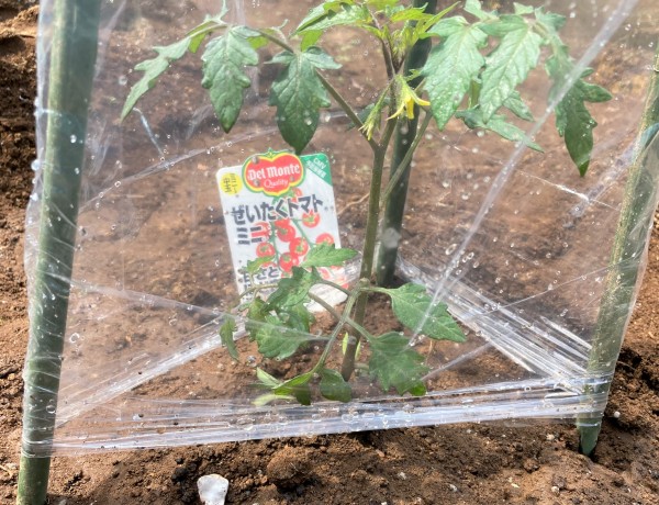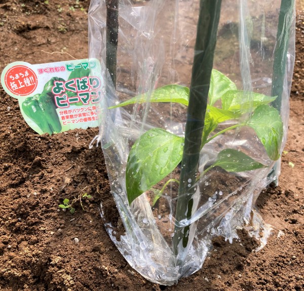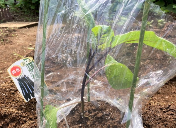 良く根付いてもらうためにビニール袋で囲うんですって!