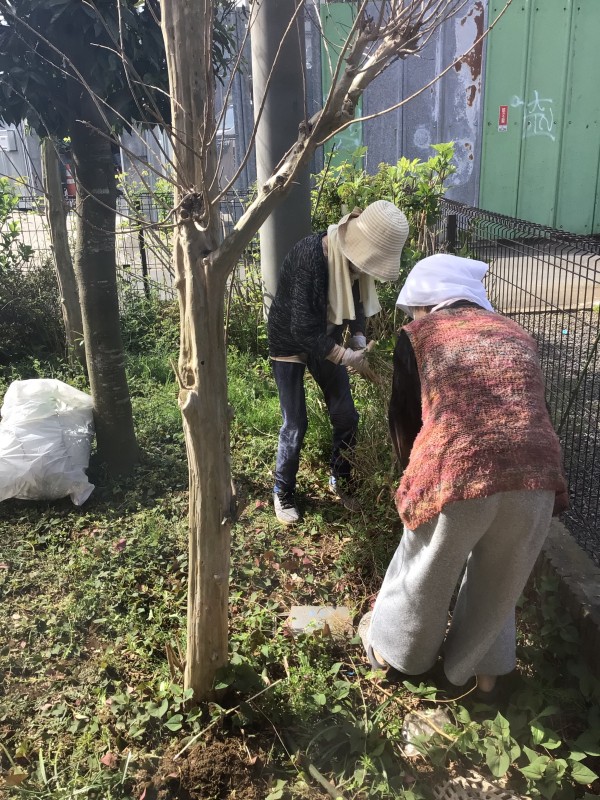 ご利用者様お二人とご一緒に、草むしり退治です!(`・ω・´)