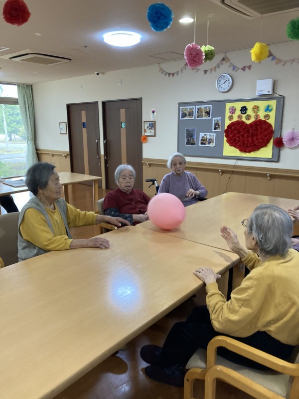 雨の日でも体操や風船バレー、室内の歩行運動を行っています!(^^)!