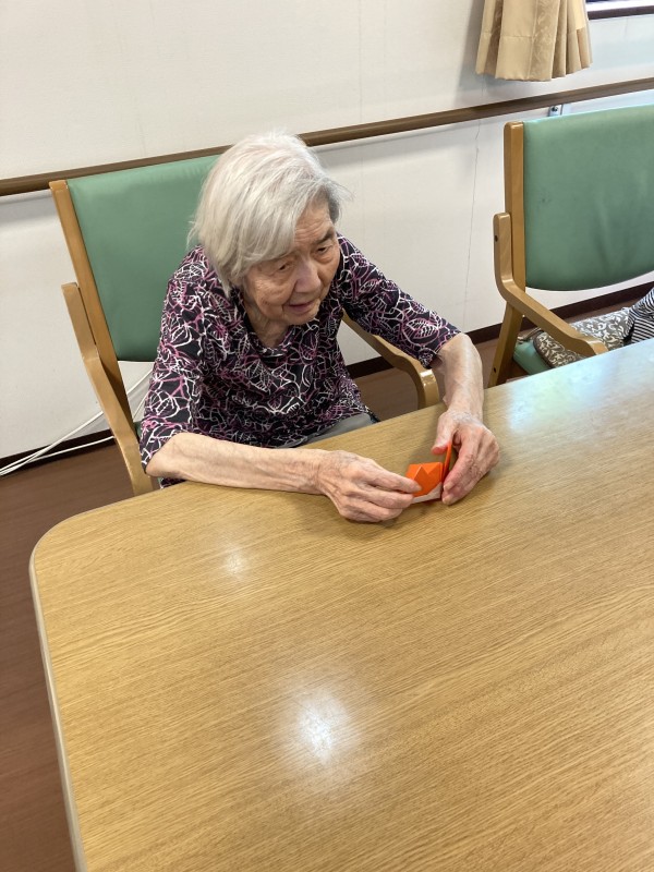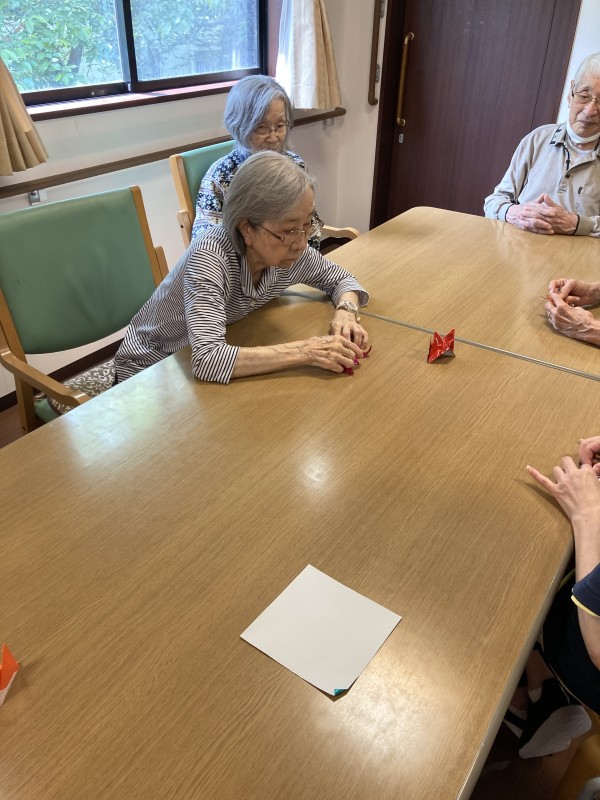 スタッフに折り方を聞きながら一所懸命に折り紙を折る姿にわたくし感動いたしました