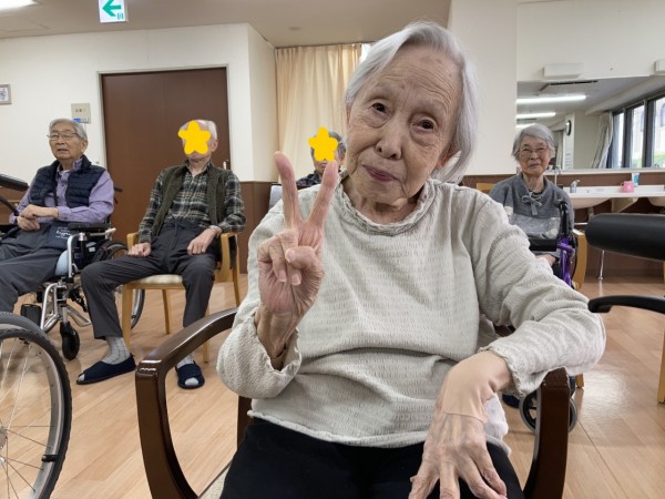 「たくさん身体を動かしたわよ!ピース♪」と笑顔のご利用者様です!