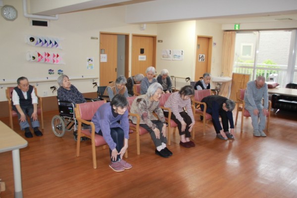 こんにちは!認知症対応型共同生活介護グループホームみんなの家 蕨です。いつも、介護ブログをご覧いただきありがとうございます。昨日は、母の日のお祝いがあり、ゴールデンウィークの最終日、長い方は10日間もお休みされたようですね。3年ぶりに、コロナの制限もなく楽しく過ごされたようですね。うらやましく思います。今日は、天候が悪く梅雨の準備みたいな空模様です。気温もあまり上がらずご利用者の皆様方はこうゆう不安定な気候が一番つらく感じると思います。そんな、寒い午前中、今日から始まるリモートストレッチ口腔体操に参加しました。体をほぐすストレッチから徐々に難易度を上げ朝の固くなっている身体をほぐしていきました。最後に茶摘みの歌を唄いながらストレッチをし口腔体操とストレッチが完了です。午前中なので、体がスムーズに動いてくれるかなーと期待しています。