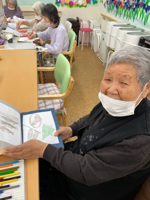 ご利用者お一人お一人専用の塗り絵の本。毎回楽しみです!(^^)!