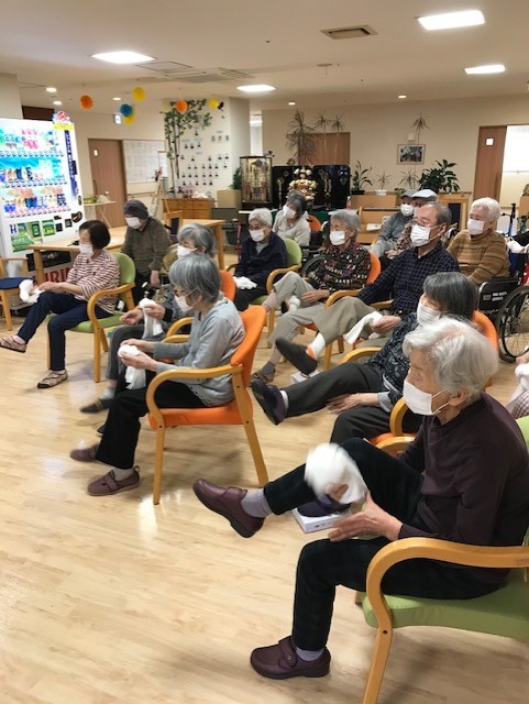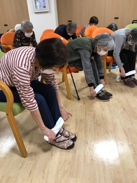 タオルを使って全身の体操をしていました。(^^)/~~~