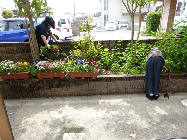 ご利用者様と職員で急遽草むしりが始まりました(笑)