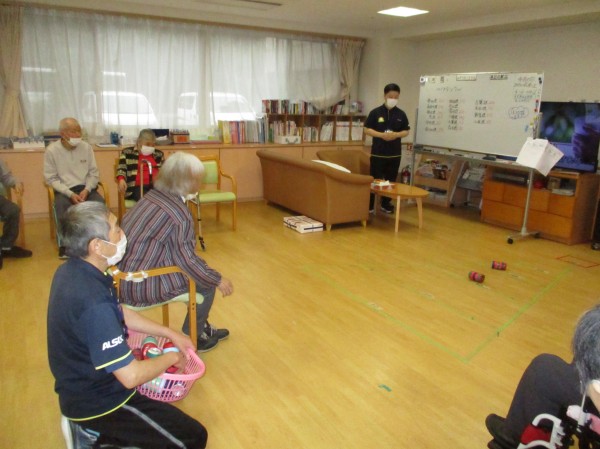 こんにちは。デイサービスセンター遊・西東京です。今日の運動レクレーションは『ペタンク』です。