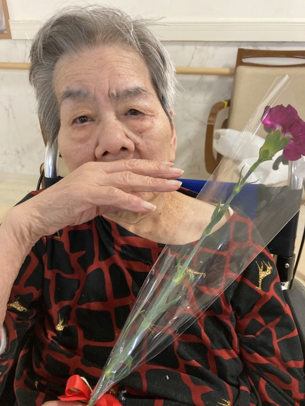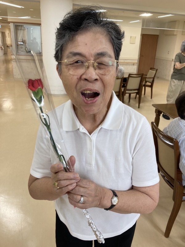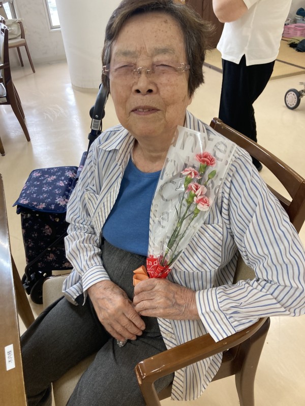 同じ文言になってしまいますが、3階の女性ご利用者様のカーネーションを受け取った時の