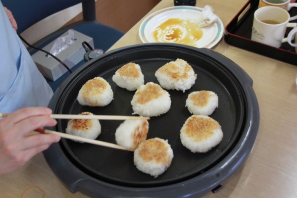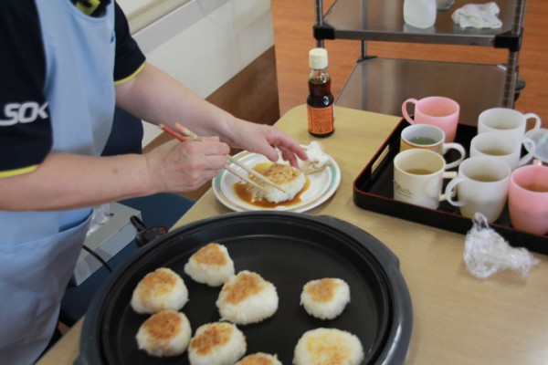 認知症対応型共同生活介護 グループホームみんなの家 蕨のおやつブログです。今日は、女性の皆様方にお手伝いいただき、おにぎりを握って焼きおにぎりのおやつを作り皆様に召し上がっていただきました。ごま油の香りとお醤油の香ばしい匂いが2階のフロアーに漂い待ちきれないご様子でした。夕食はだいじょうぶかな~?