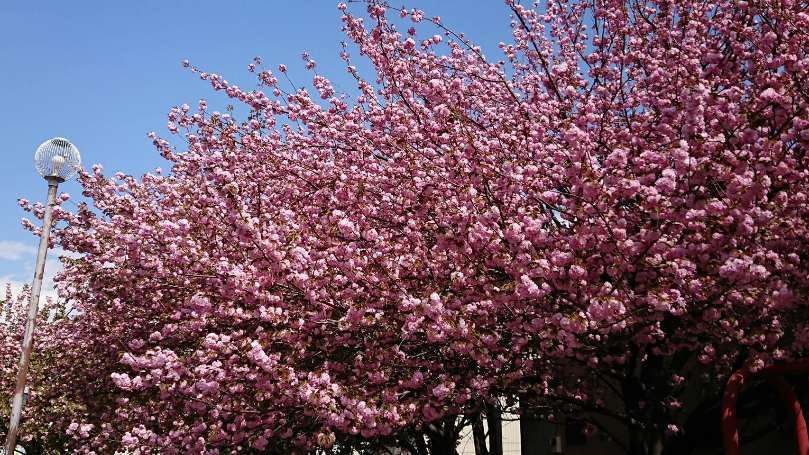 今日は、ポカポカ陽気です。中島公園の八重桜を見に行きました。