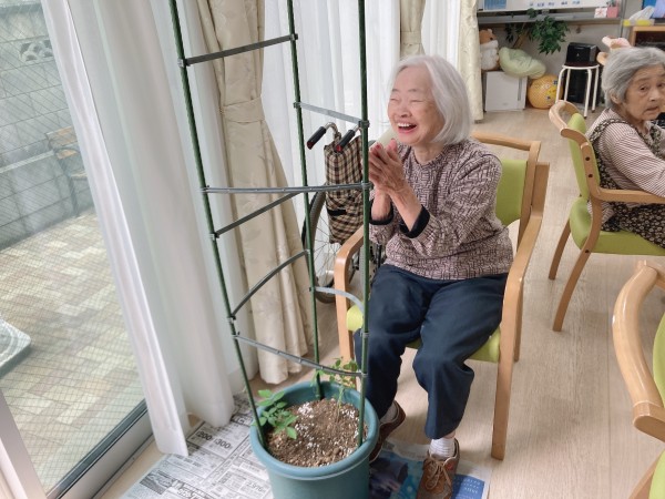 ご入居者様と一緒に、きゅうりとトマトの苗を植えました!