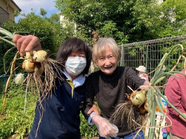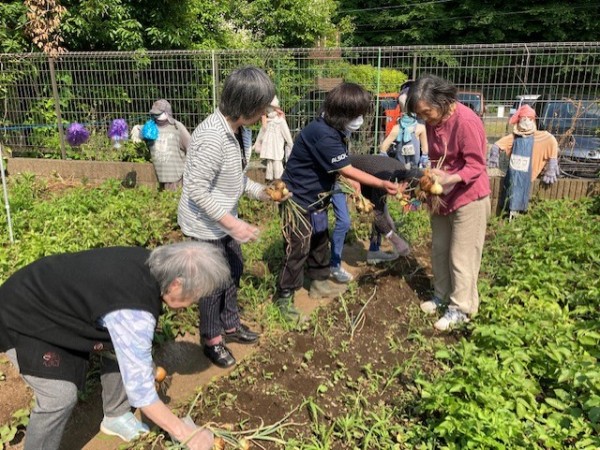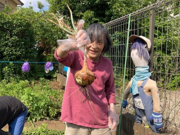 4月に芽が出てきたジャガイモと玉ねぎを収穫する日がやっと来ました!!