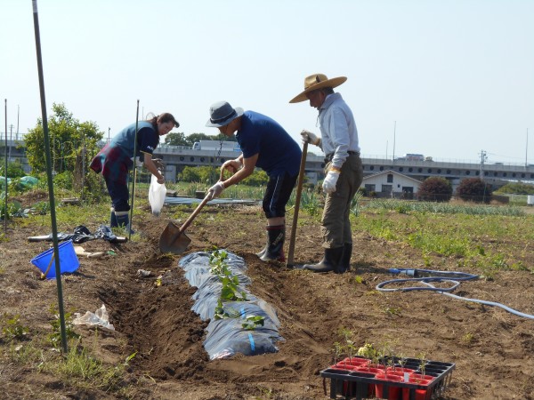 先日、ホーム近くの畑に職員と入居者様で苗を植えました。
