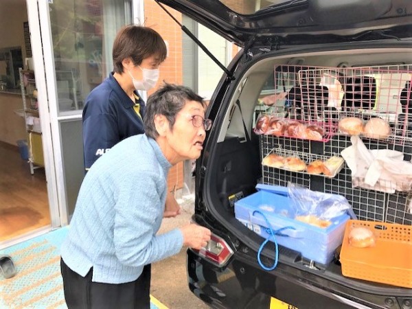 コロナ禍で、移動パン屋さんの買い物も、希望を伺って職員が購入していましたが、久しぶりに皆様の目で見てパンを選んで頂きました。