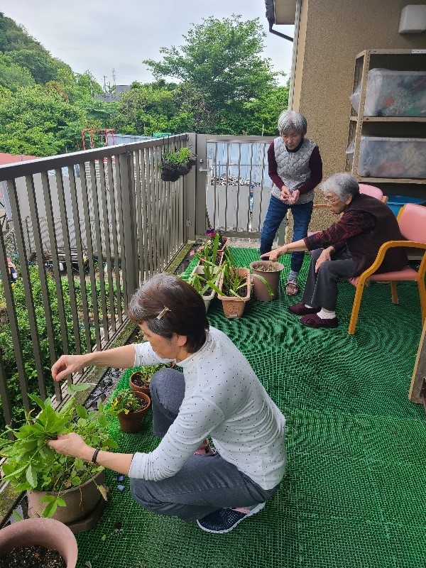 毎日変わるがわりに水をあげ時には雑草取りも皆で話しながら行なっています