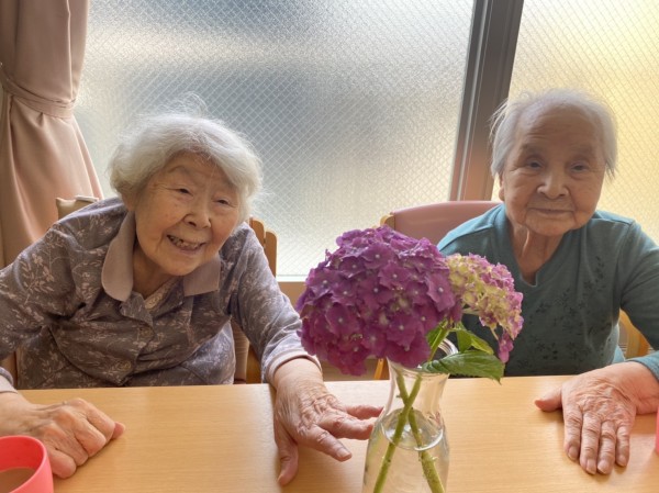 あちこちに『紫陽花』が咲いていて綺麗ですね♡施設の敷地内にもキレイに咲いています(๑˃̵ᴗ˂̵)