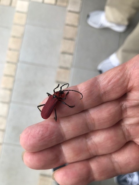 ネットで調べたら、「ベニカミキリ」という名前の虫でした。