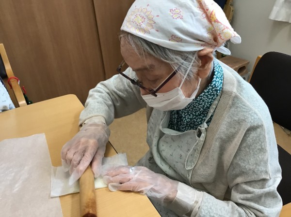 生地はくっつきやすいので、クッキングシートを敷いて延ばします。