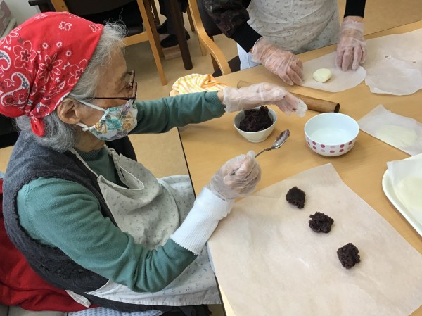 生地を延ばしてあんこを包みます。
