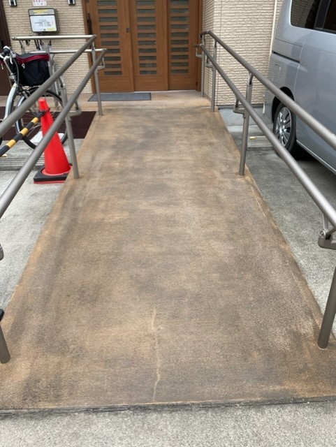 梅雨の時期に特に目立つ玄関先のスロープの汚れ、、、、さてどうしたものか(;'∀')