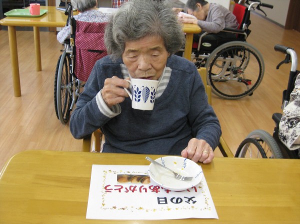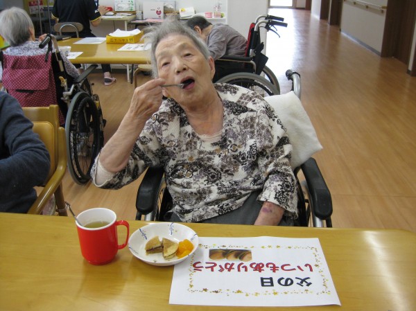 父の日でお祝いを行いました!! 思い出を話し合ったりして笑いがとまりませんでした( ^ω^)・・・ どら焼きを召し上がっていただきました。