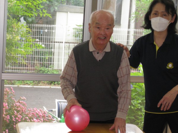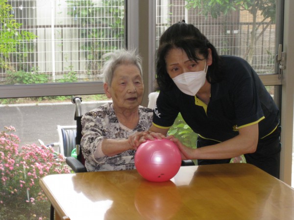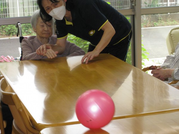 こんにちは!グループホームみんなの家・あきがせの介護ブログです!よろしくお願いいたします。今日はボール遊びを行った時のご様子をお知らせいたします!!