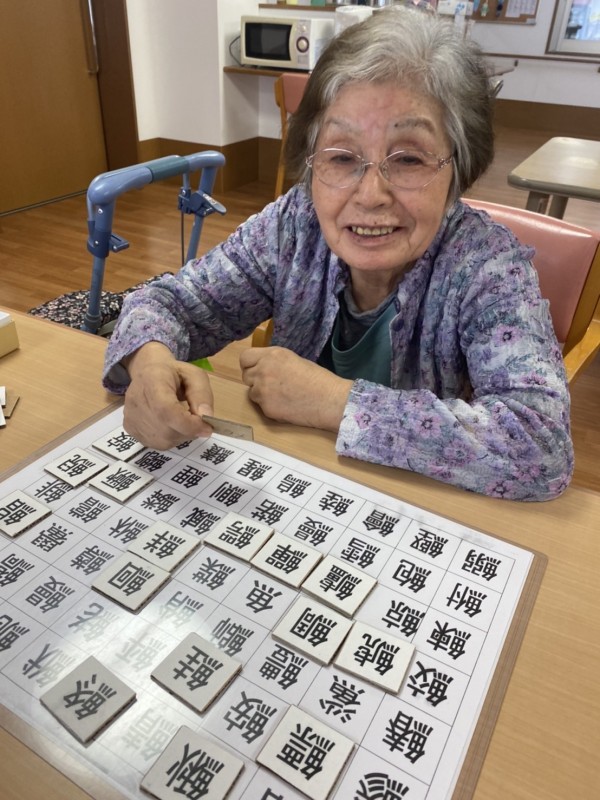 ◉『これは勉強になって楽しいわ♬』と魚へんの漢字パズルに取り組まれるK様。
