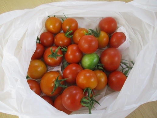 袋いっぱいに赤いトマト美味しそうです\(^o^)/