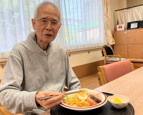 冷やし中華には、畑で獲れた茄子・きゅうり・トマトを使用しました(^^)/
