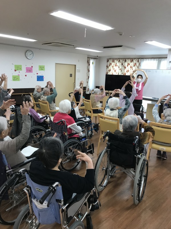 今回は体操の先生に直接来ていただきましたが、それ以外にもリモート体操を月に4回ほど行っています。