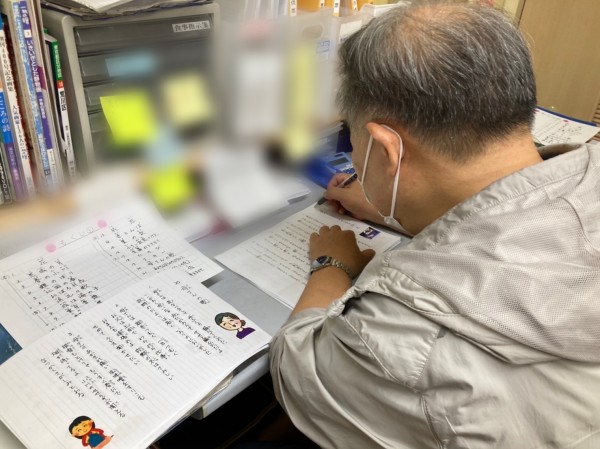 送迎でお馴染みの大谷さんが1枚ずつ書いて作った歌詞カード。