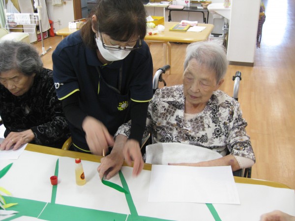 こんにちは! グループホームみんなの家・あきがせの介護ブログです! よろしくお願いいたします。 七夕に向けて笹の葉を作りました。その時のご様子をお知らせいたします!!
