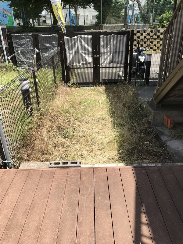 まずは草だらけの歩道の草むしりから。