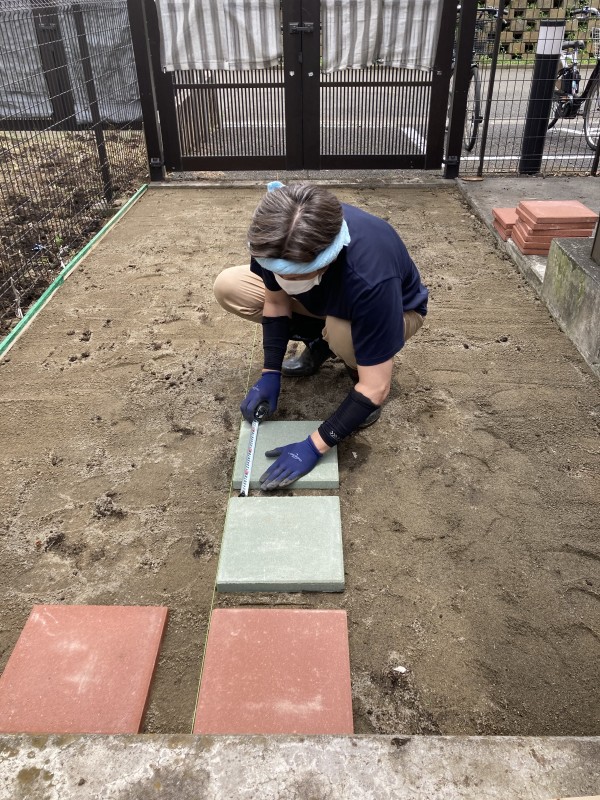 それでは作業開始です!敷石がきれいに並べられていますね♥