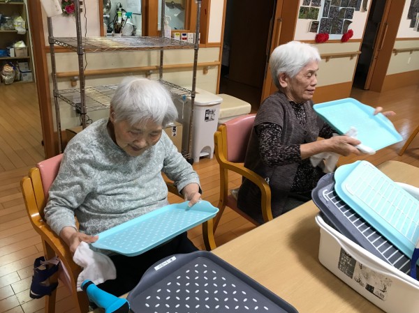 2Fのご利用者様が食器拭きのお手伝いをして下さっていました。