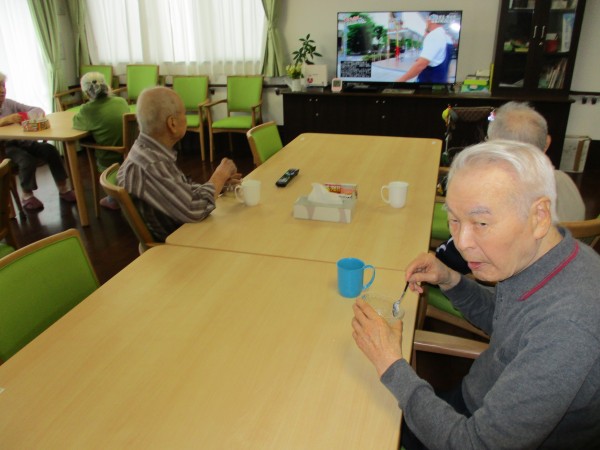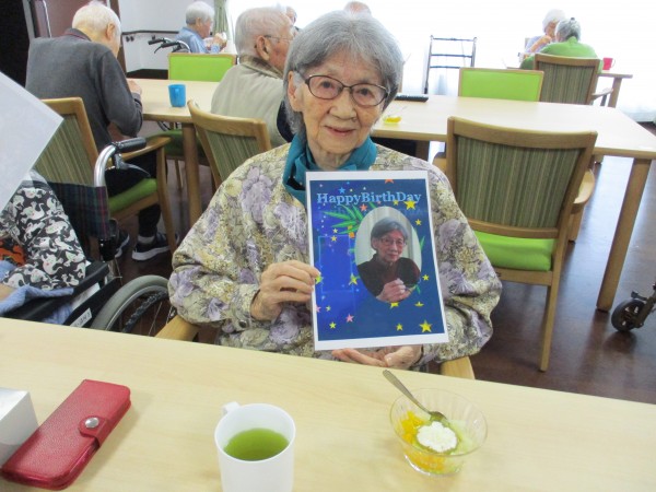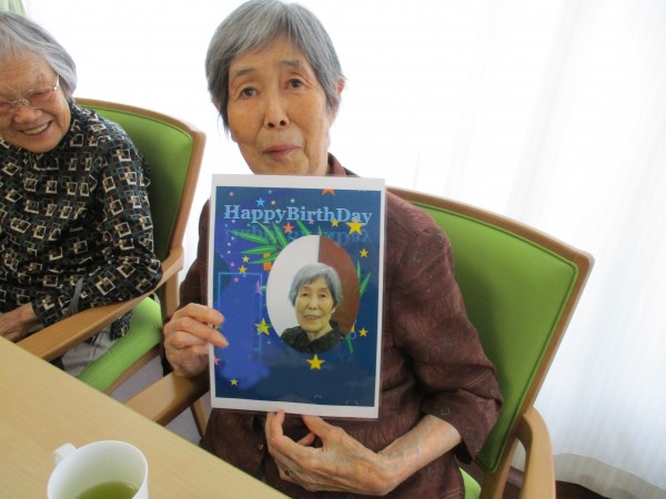 職員手作りのおやつと、誕生日の方にはバースディカードを渡し