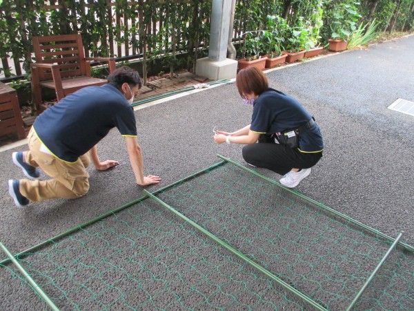 そしてホーム長がグリーンカーテンを買ってきてくれたので、スタッフTとスタッフYあとホーム長で作成しました°˖✧◝(⁰▿⁰)◜✧˖°