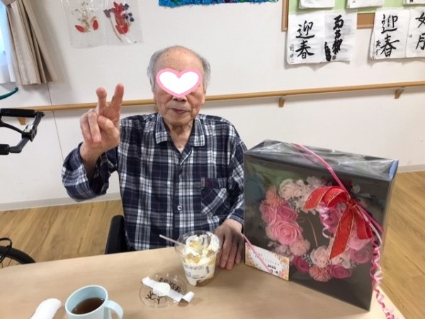 誕生日当日、ご家族様が【お花とケーキ】を持ってきて下さったので