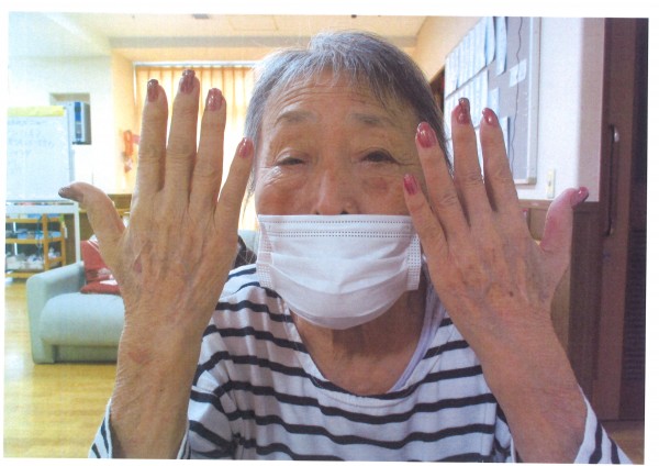 ネイルサロンとは程遠いのですが、爪にマニキュアを塗ると指がとてもきれいに見えるから不思議です。皆様とても喜んでくださるので、塗っている方私も嬉しくなってしまいます。オシャレは永遠ですね♡