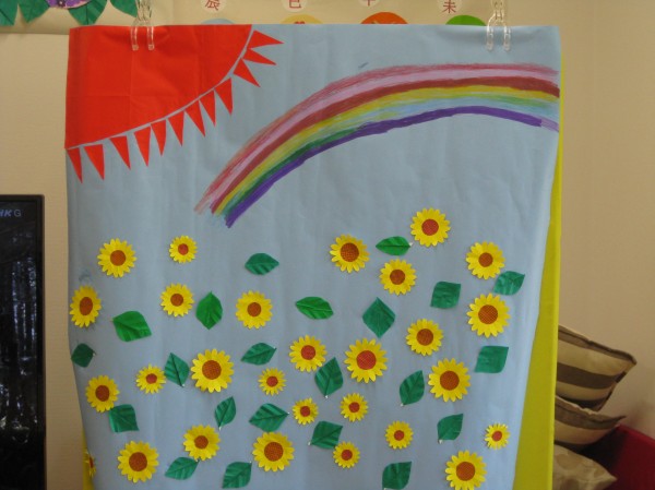 太陽や虹を描いて、夏らしい作品が仕上がりました!!